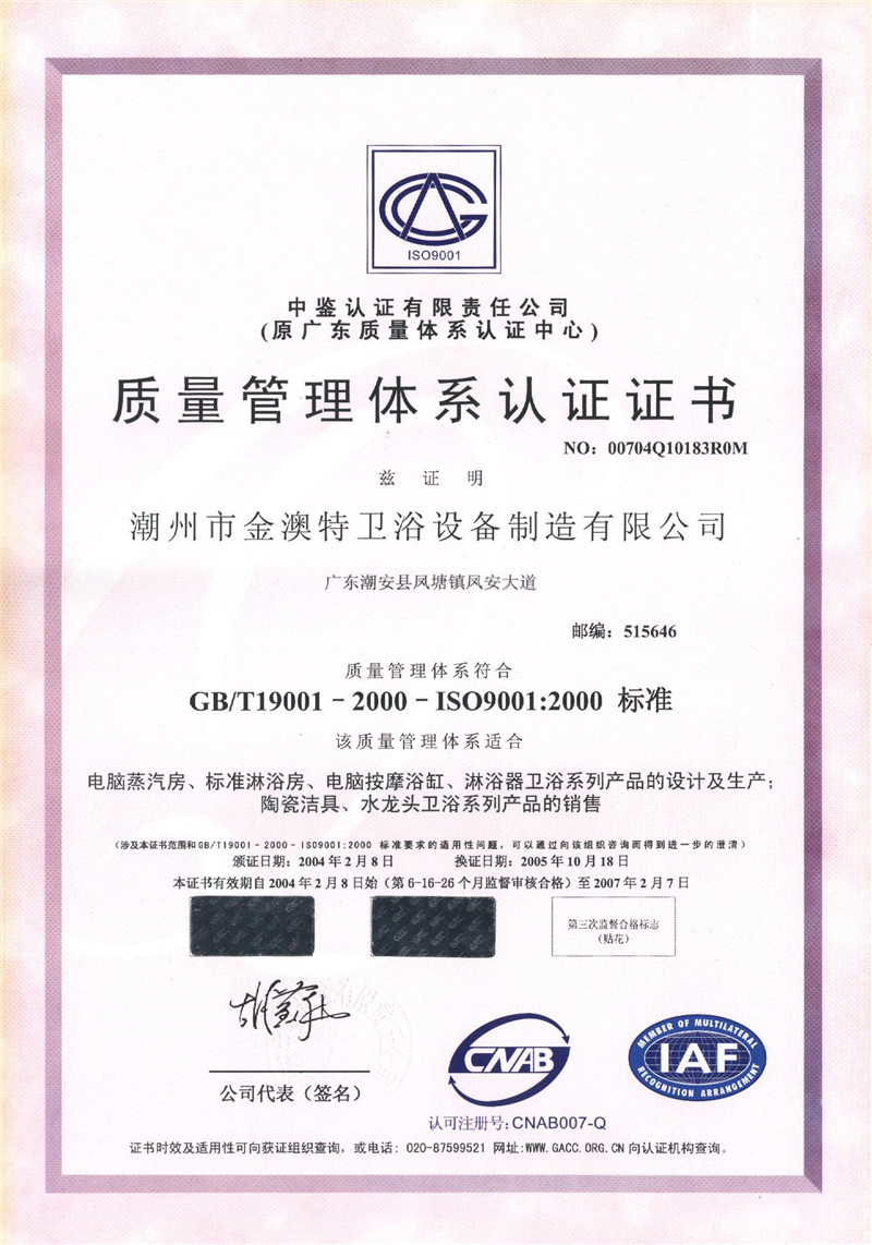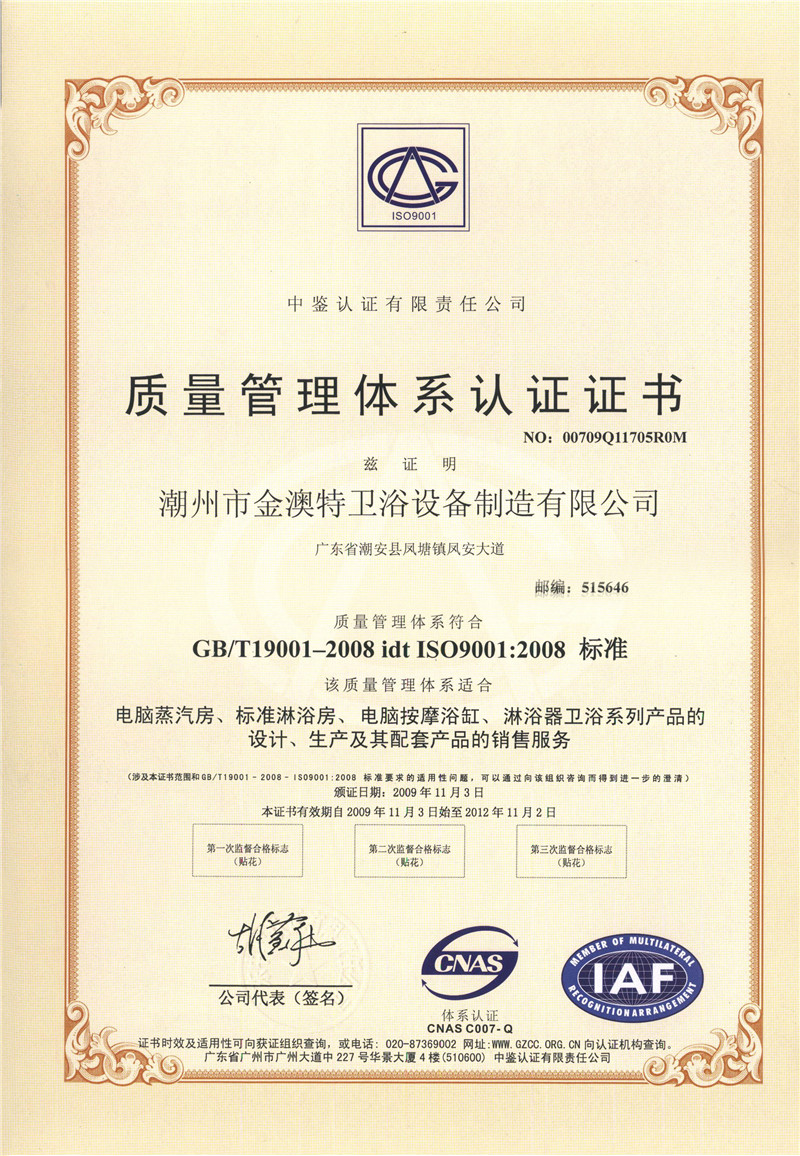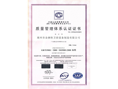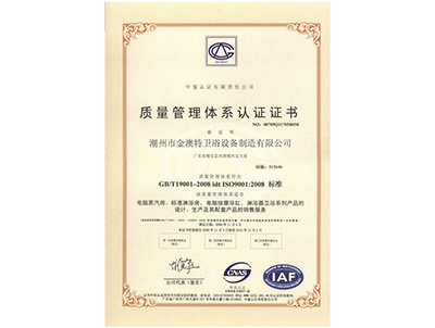 質(zhì)量管理體系認(rèn)證證書(中文版)