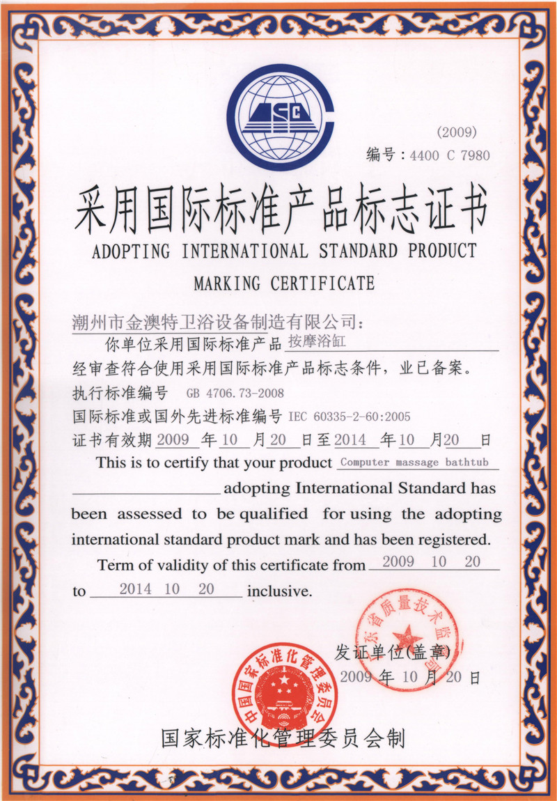 采用國(guó)際標(biāo)準(zhǔn)產(chǎn)品標(biāo)志證書