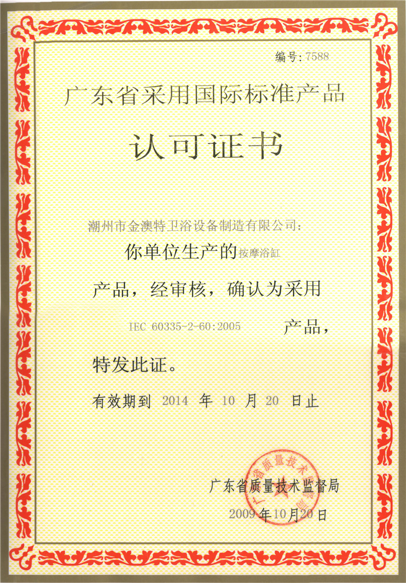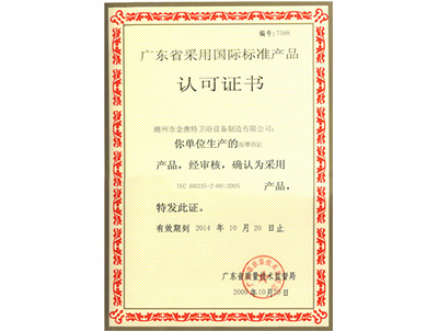 廣東省采用國(guó)際標(biāo)準(zhǔn)產(chǎn)品認(rèn)可證書