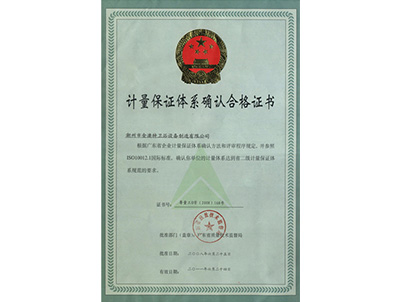 計(jì)量保證體系確認(rèn)合格證書