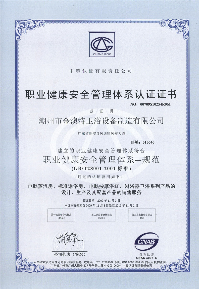 職業(yè)管理體系認(rèn)證證書(中文版)