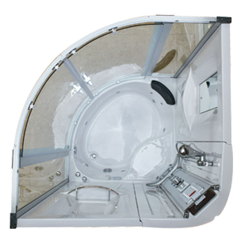 包含:彈跳去水,無聲雙滑塊,兩個門把手,置物架,鏡子,頂噴,升降桿,花灑,花灑軟管,水龍頭,6個霧化噴嘴,靠背,電腦,臭氧,頂燈,音箱,風扇,大燈面板,蒸汽出口