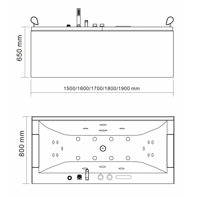 功能:冷熱水閥,普通水龍頭和調(diào)節(jié),活動花灑,按摩噴嘴,空氣調(diào)節(jié),空氣開關(guān),回水,水龍頭,底燈,圍裙燈,枕頭,毛巾?xiàng)U,扶手,去水。