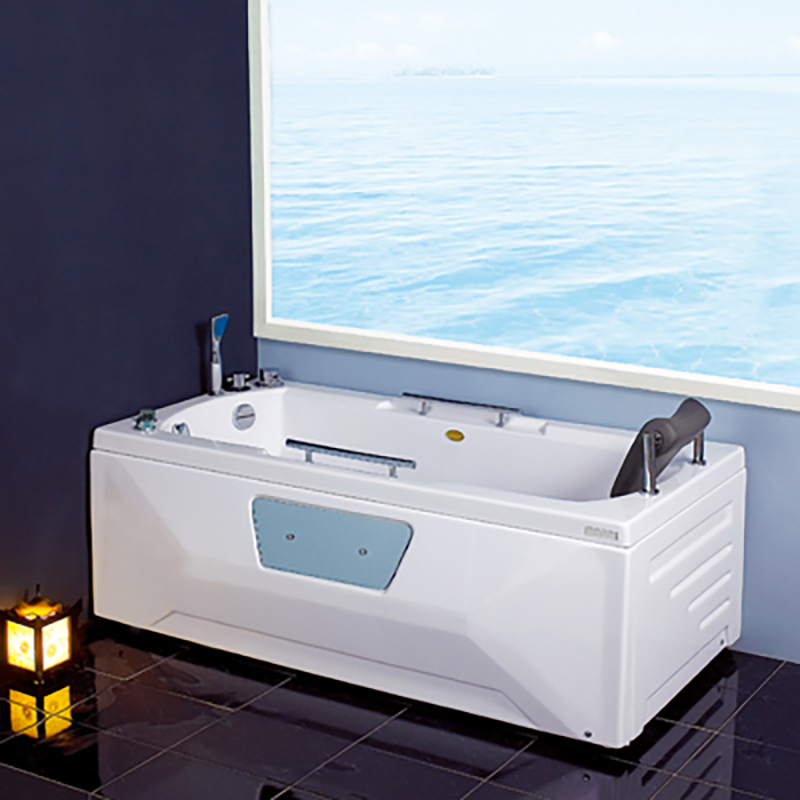 3.標(biāo)準(zhǔn)按摩浴缸 功能:冷熱水閥,普通水龍頭和調(diào)節(jié),活動花灑,按摩噴嘴,空氣調(diào)節(jié),空氣開關(guān),回水,水龍頭,底燈,圍裙燈,枕頭,毛巾?xiàng)U,扶手,去水。 備注:不帶電腦,但可以水療按摩功能