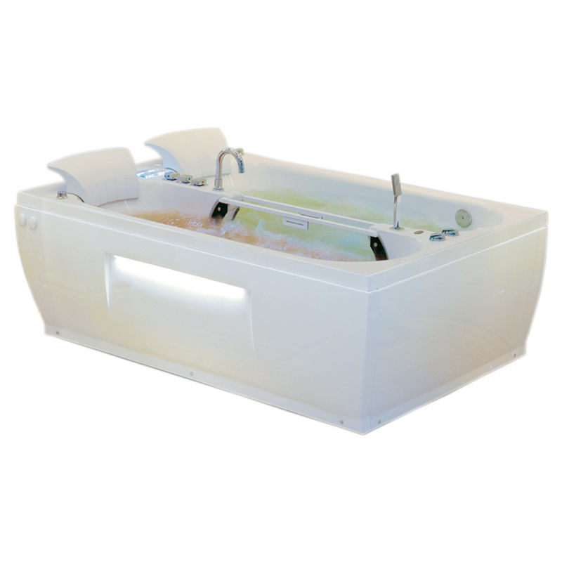 3.標(biāo)準(zhǔn)按摩浴缸 功能:冷熱水閥,普通水龍頭和調(diào)節(jié),活動(dòng)花灑,按摩噴嘴,空氣調(diào)節(jié),空氣開關(guān),回水,水龍頭,底燈,圍裙燈,枕頭,毛巾?xiàng)U,扶手,去水。 備注:不帶電腦,但可以水療按摩功能