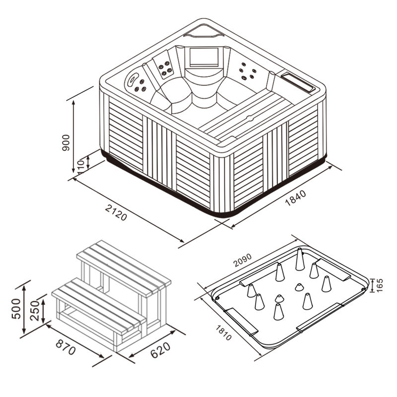 | 1.Spa Shell | 1pc | 15.Seat capacity | 2 persons | |||