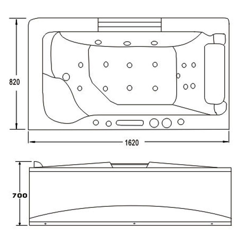 Components: Bathtub, Apron, Transparent glass, Motor, Air blower, Heater, Water level detector, Drainage, Cool & Hot water wrench valve, Normal Faucet & Shower wrench valve, Air adjustor, Waterfall inlet/faucet, Flexible shower, Bachkwater,Water nozzle, Air nozzles, Pillow, Bottom lamp, Control panel, speaker.