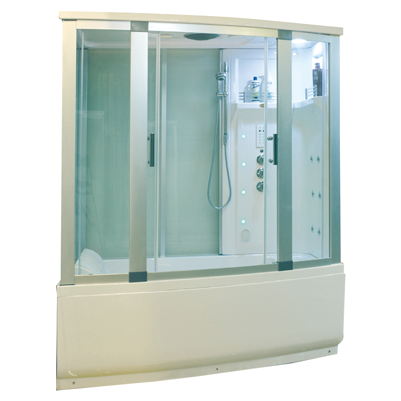 WITH:Pop-up drainer with overflow valve,TX-36C pillow,silent double  slider,2 door handles,single layer goods shelf ,top shower,lifter,shower,shower hose,faucet,6 atomization jets,backrest,computer,ozone,top lamp,fan,speaker,lamp panel,4 bead background lamp,steam export