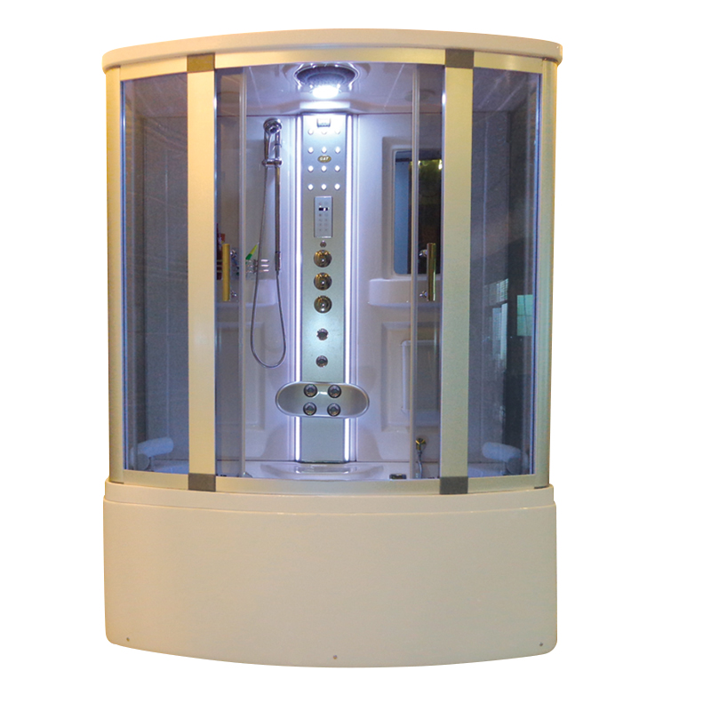 WITH:Pop-up drainer with overflow valve,2 TX2 pillows,silent double  slider,2 door handles,single layer goods shelf ,top shower,lifter,shower,shower hose,faucet,6 atomization jets,backrest,computer,ozone,top lamp,speaker,fan,4 bead background lamp,steam export