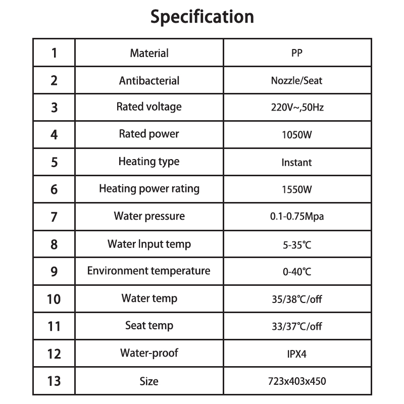 Function:Flushing,heating, woman wash,children wash, adjuster etc.